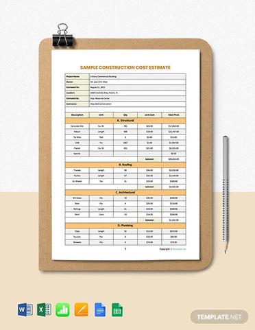 11 Free Construction Estimate Template Excel Word
